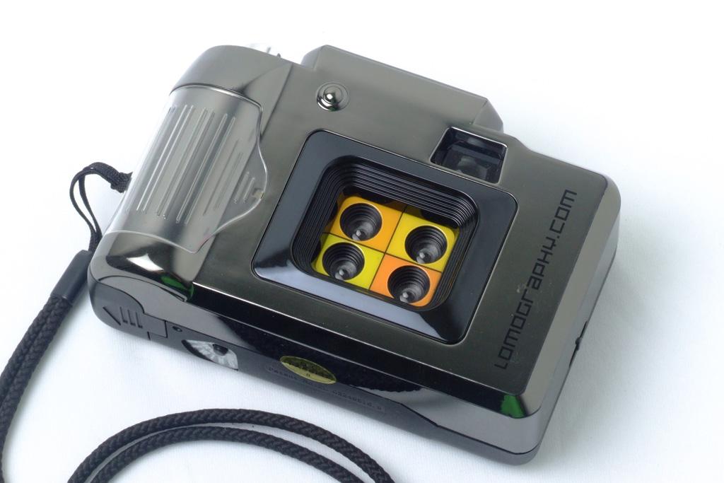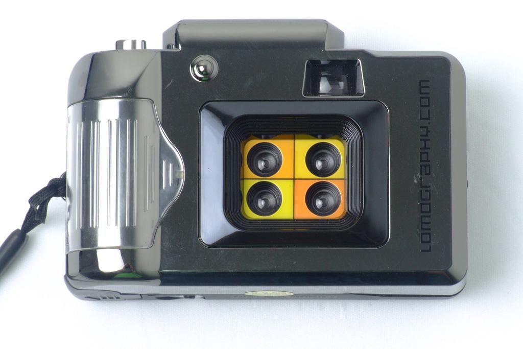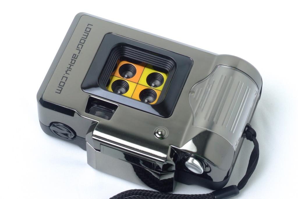 Ela possui 4 lentes dispostas em quadrantes, dividindo a fotografia em 4 retângulos menores. As lentes abrem em sequência circular, criando uma animação da ação que você fotografa. Tudo acontece em 1 segundo e cada lente expoe o filme em 1/4 de segundo. Controle o tempo da sua fotografia e grave em filme 1 segundo da sua vida.