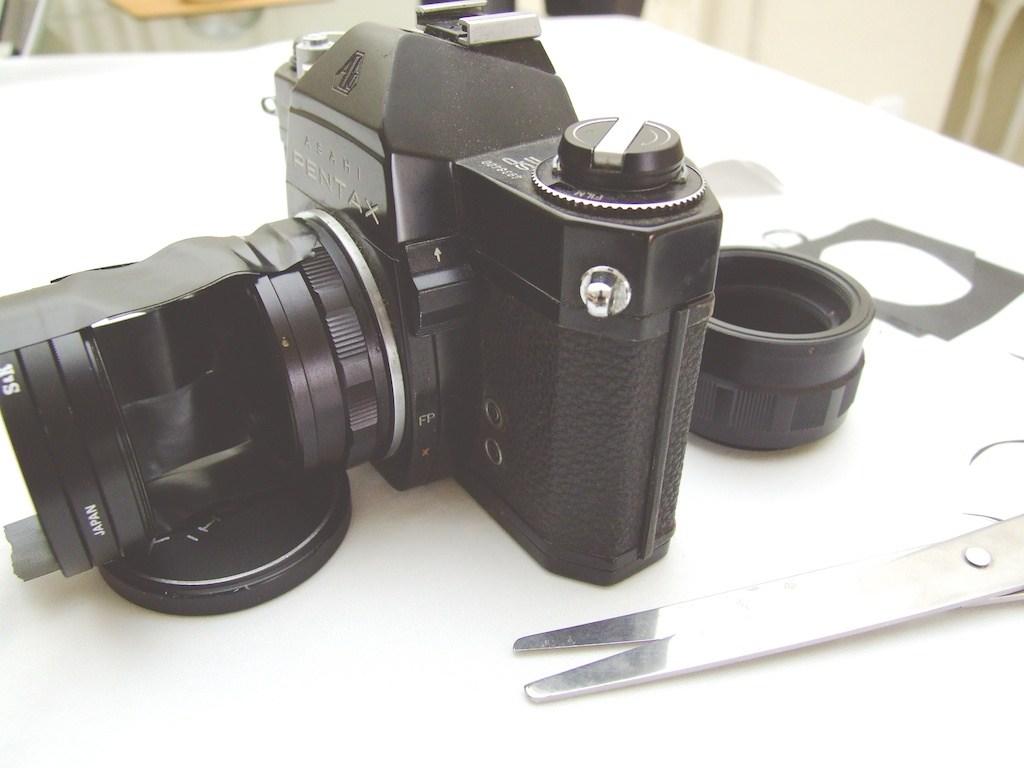 - Câmera SLR M42 (minha pentacona Spotmatic Preta)