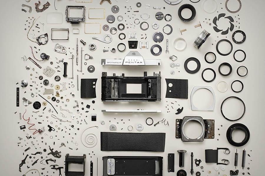Todd Mclellan é fotógrafo e um cara que gosta de desmontar coisas. Mas desmontar mesmo, do nível de separar todos os parafusinhos e pequenos pedaços das coisas, organizar de uma forma metódica e doida e enfim fotografar.