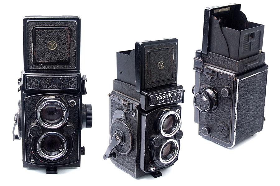 Yashica Mat-124 B é praticamente a mesma coisa que a 12 e a 24, só que tem a capacidade de trocar entre os filmes 120 e 220. Mas ela não tem fotômetro como a Yashica Mat 124G.